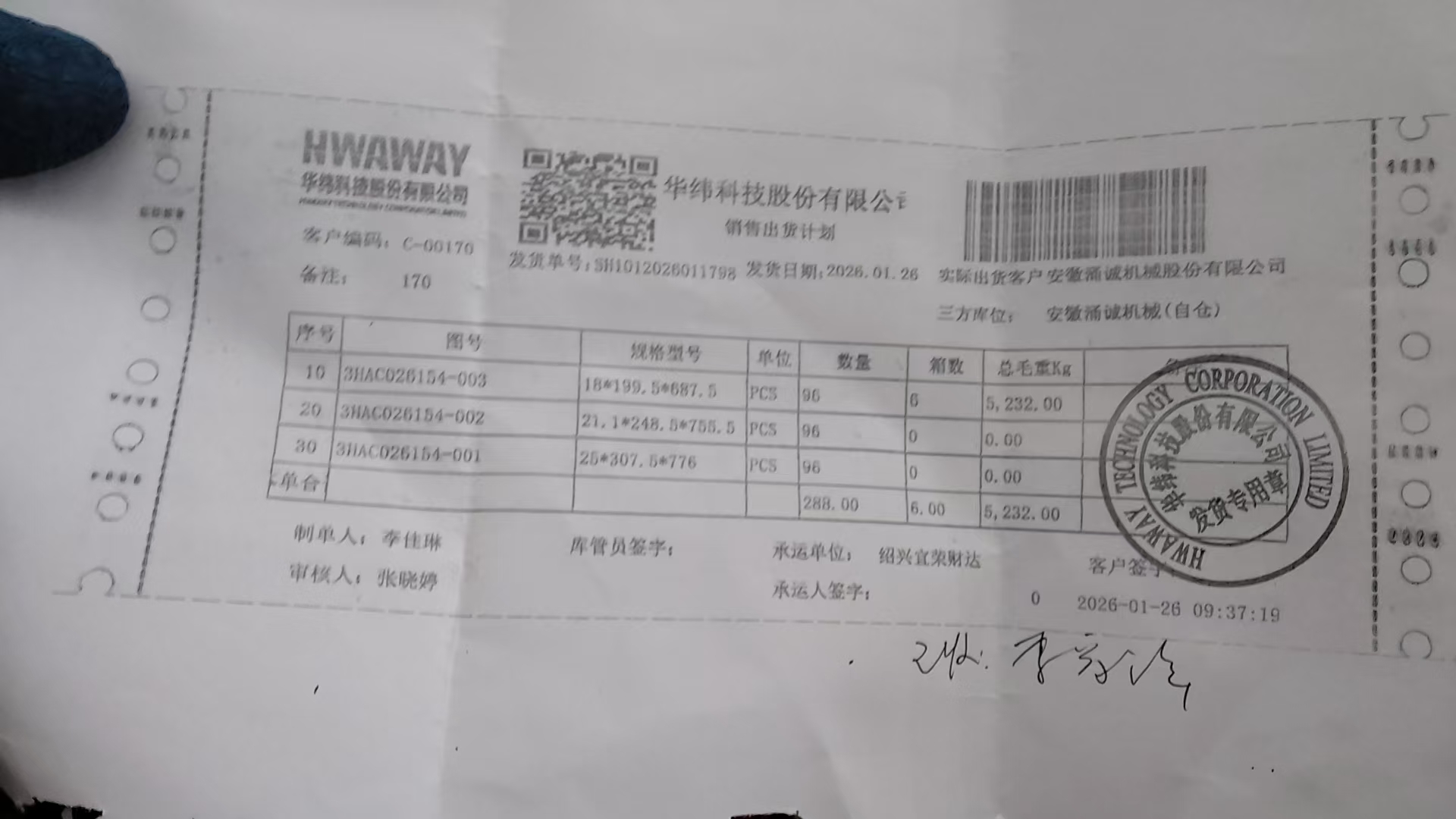 卸货:1月27日09:30