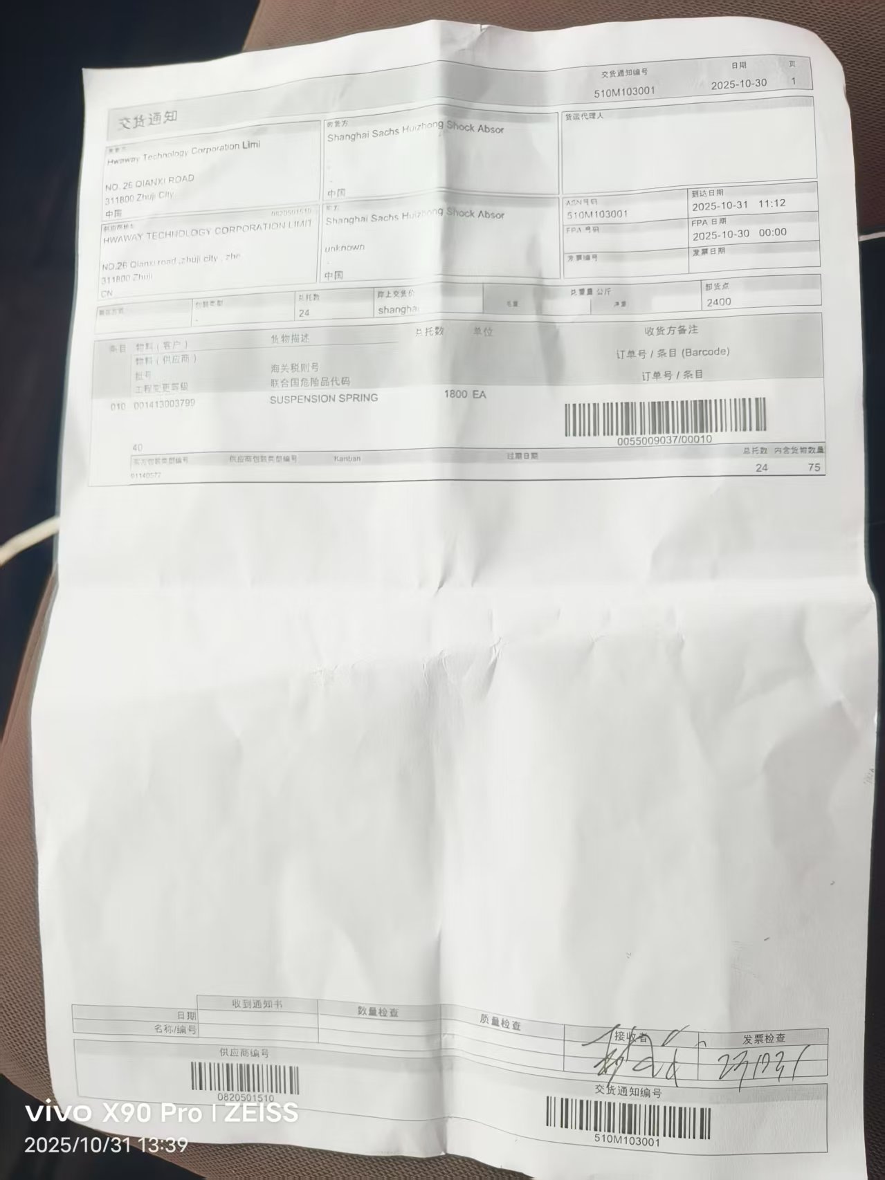卸货:10月31日13
